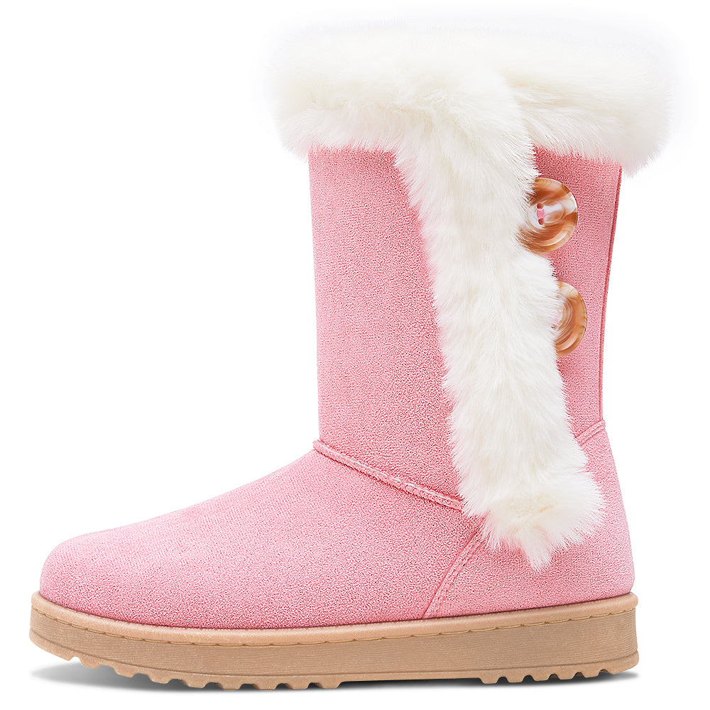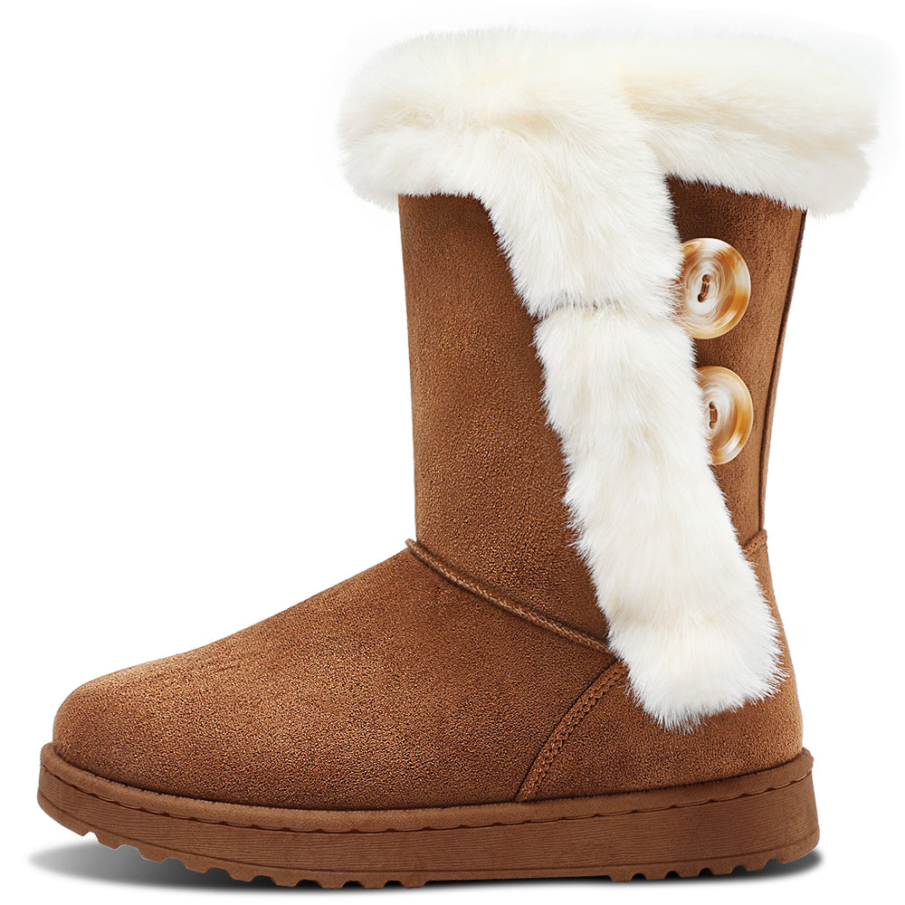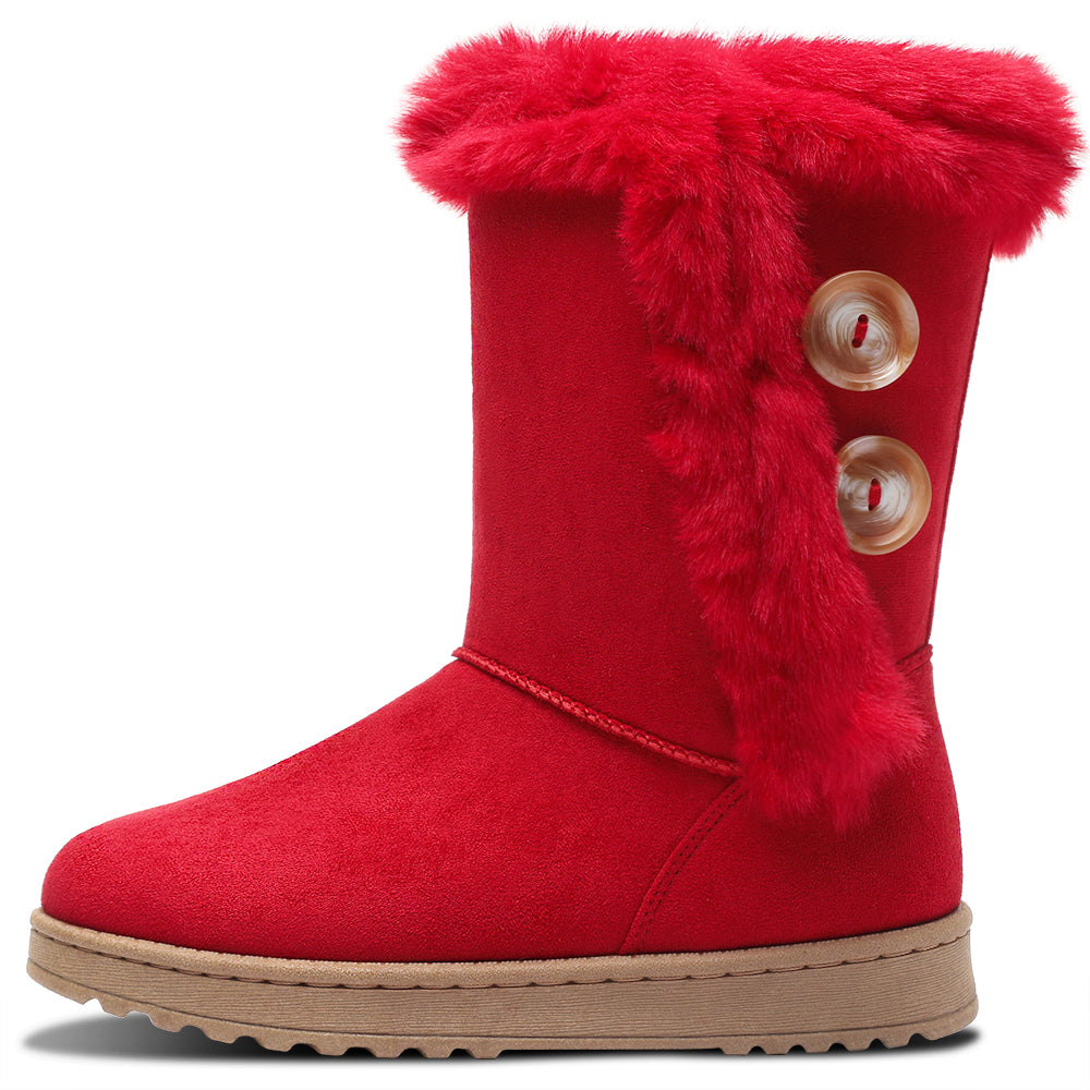 Women’s winter snow boots Short Mid Calf fashion boot Art Resin button Faux Suede boots for women